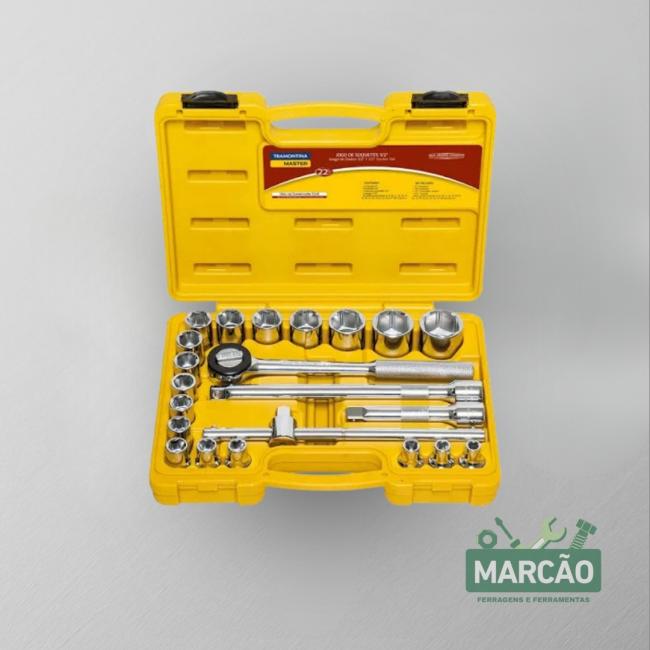 Jogo de Soquete Curto Estriado 1/2 - 22 peças Tramontina